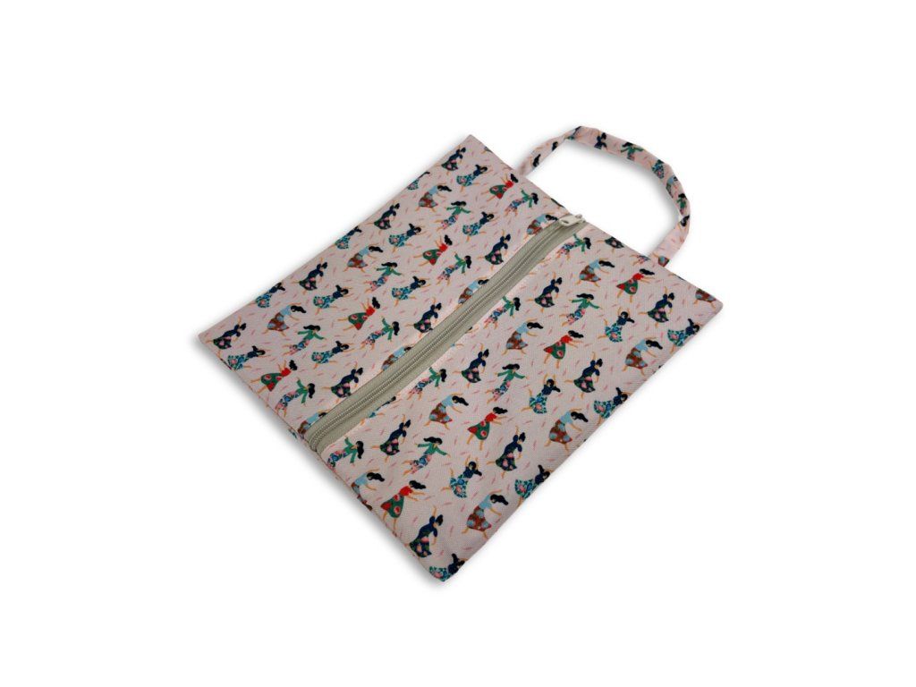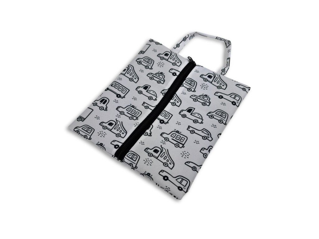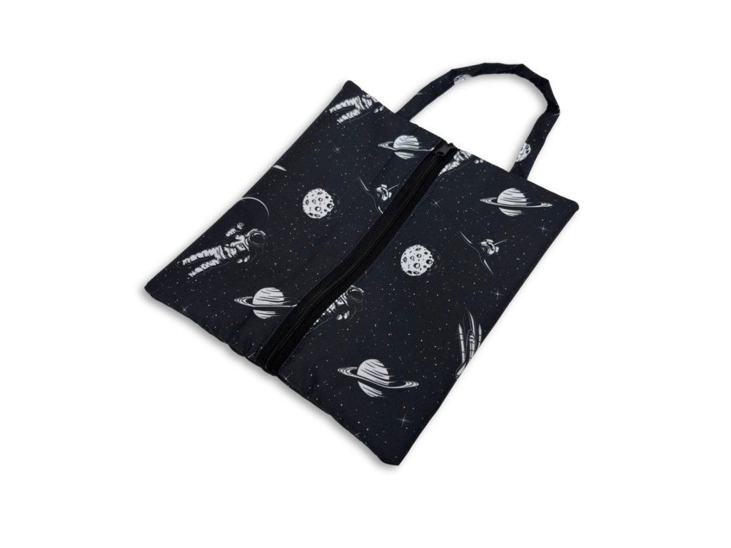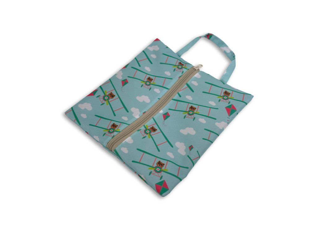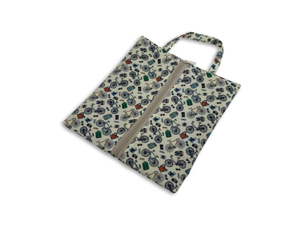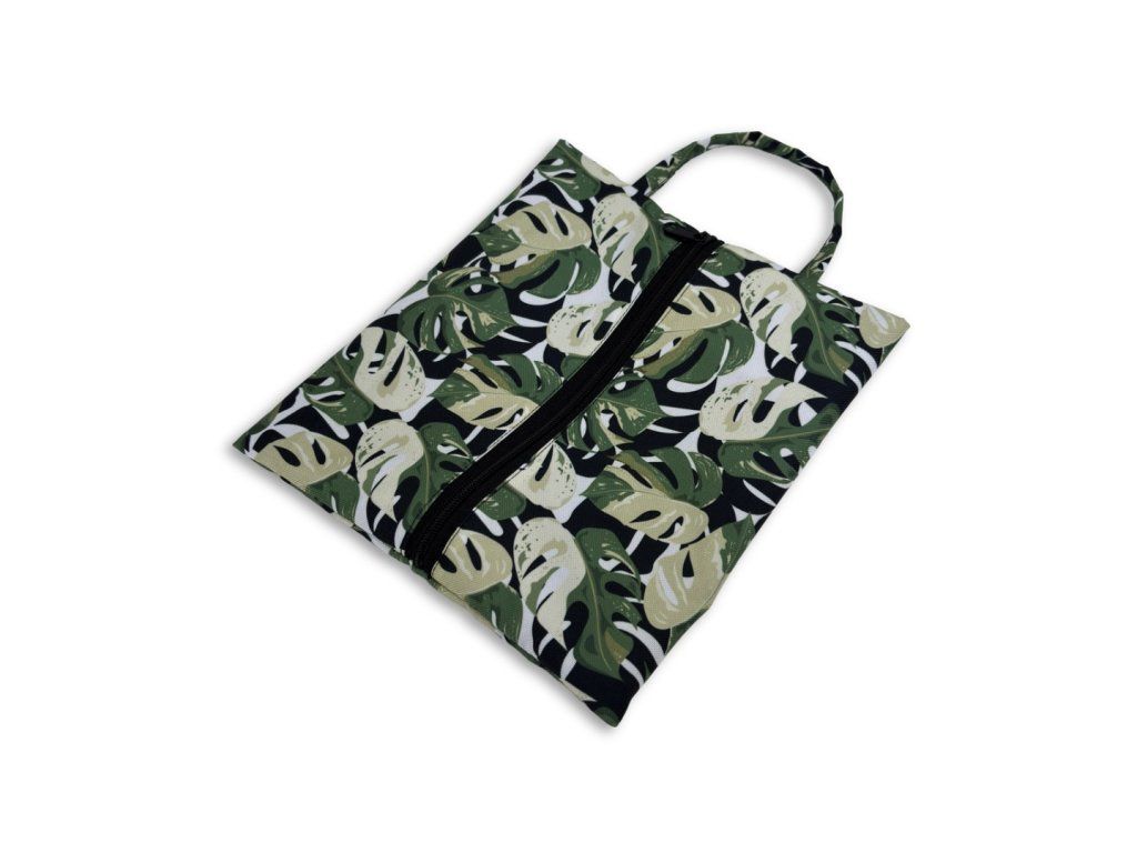 Obal je ušitý z voděodolného, nepromokavého materiálu, takže zvládne i běžné „cestovní“ situace – zablácené podrážky, vlhké boty po dešti nebo přezůvky po sportu. Praktické ucho usnadňuje přenášení i manipulaci a zip po celé délce dává jistotu, že se obal v tašce samovolně neotevře.