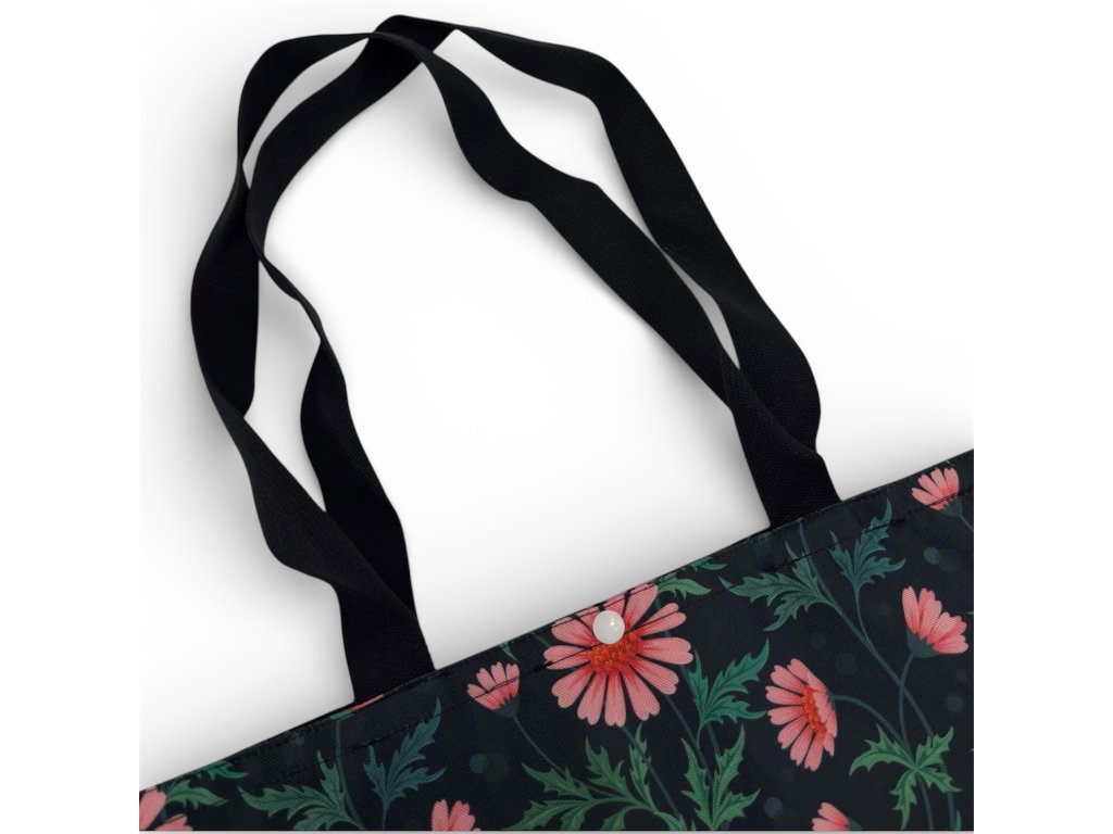 Praktický detail, který oceníte hned, je uzavírání horní části tašky pomocí drukového knoflíku. Tašku tak jednoduše zavřete, věci uvnitř zůstanou lépe chráněné a celý obsah působí upraveněji – ať už ji nesete v ruce, nebo máte přehozenou přes rameno.