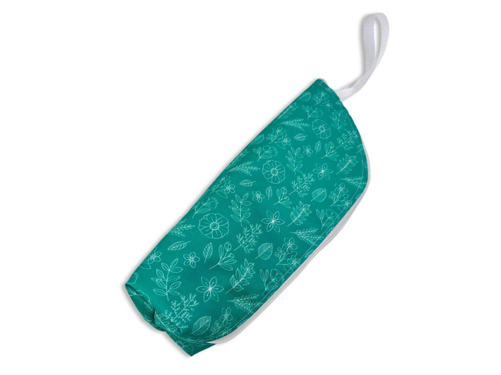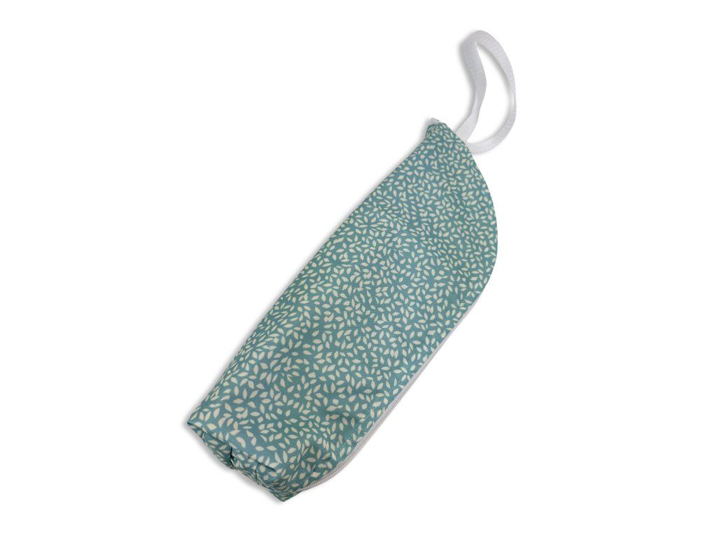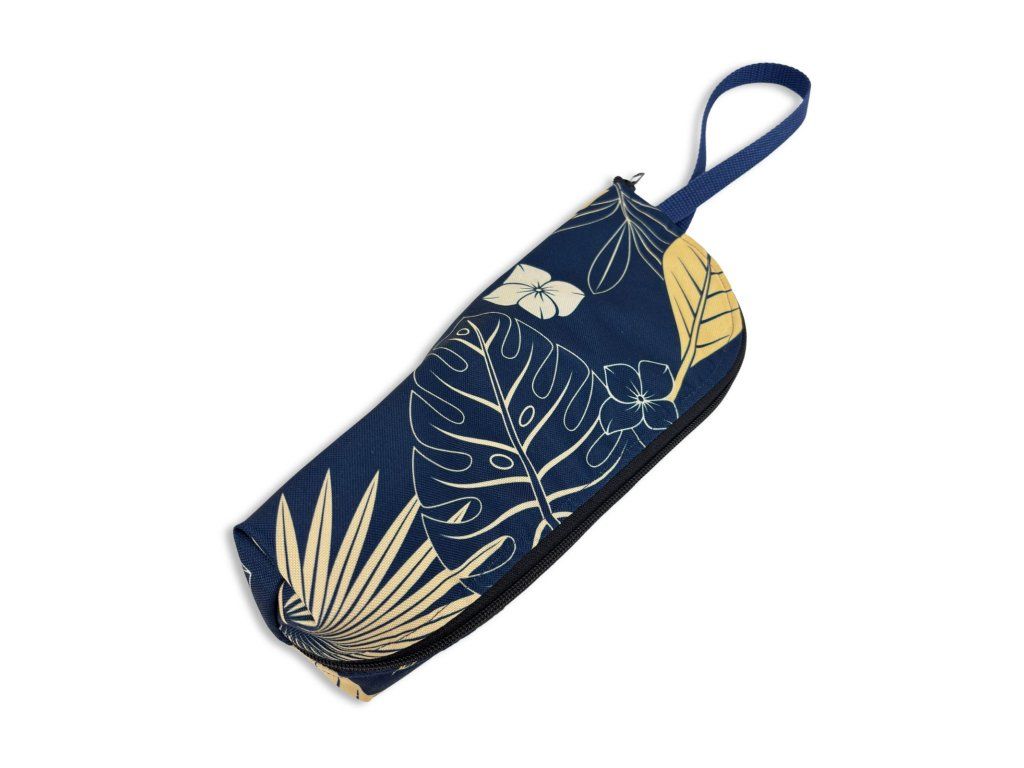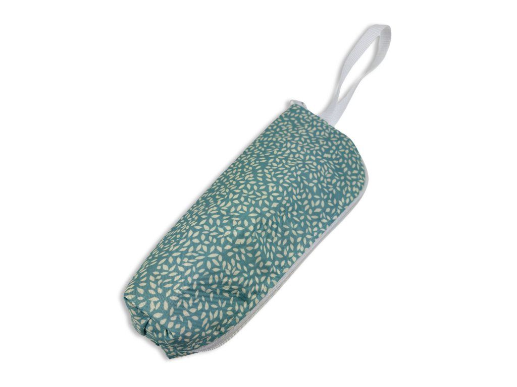 Obal má pevný tvar, zapínání na zip po celé délce a praktické poutko na přenášení. Láhev se do něj pohodlně vkládá i vytahuje. Když ho zrovna nenesete v ruce, snadno ho zavěsíte na batoh, kočárek nebo háček. Zvenku působí čistě a elegantně a jemný vzor se hodí do města i na výlety.